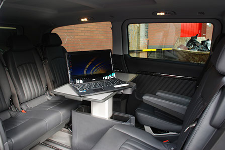 Our top level MPV comes in Ambiente Trim, this vehicle can carry six people and a huge amount of luggage in extreme comfort. The rear seating can be set to a conference layout (i.e. facing each other) with a table for you to work on, you can power your laptop or other electronic devices and take advantage of our free in car Wi-Fi(available upon request), this vehicle really is an office on wheels providing fantastic Chauffeur Services.